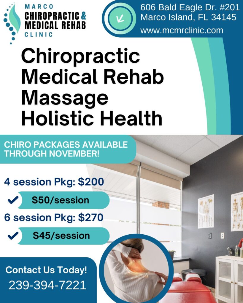When people search “best chiropractor on Marco Island,” they’re really looking for more than just spinal adjustments, they want a provider who comprehends the whole person and offers results. That’s exactly what Marco Chiropractic & Medical Rehab Clinic delivers: a full-spectrum suite from chiropractic and occupational therapy to fascial stretch and massage. Whether someone is suffering with chronic pain, recovering from injury, or simply seeking optimal mobility and wellness, MCMR Clinic provides the tools.